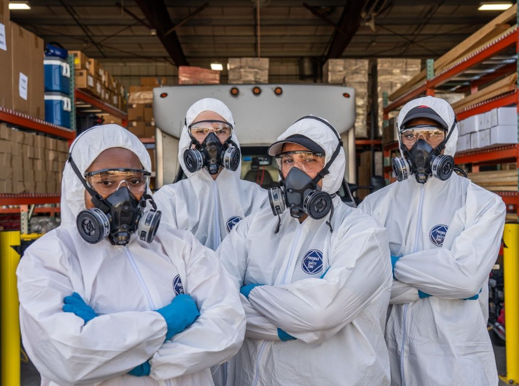 The technicians wear full PPE suits with dual-cartridge respirators. This gear is mandatory. It prevents inhalation of airborne pathogens and direct skin contact with volatile bio-matter.